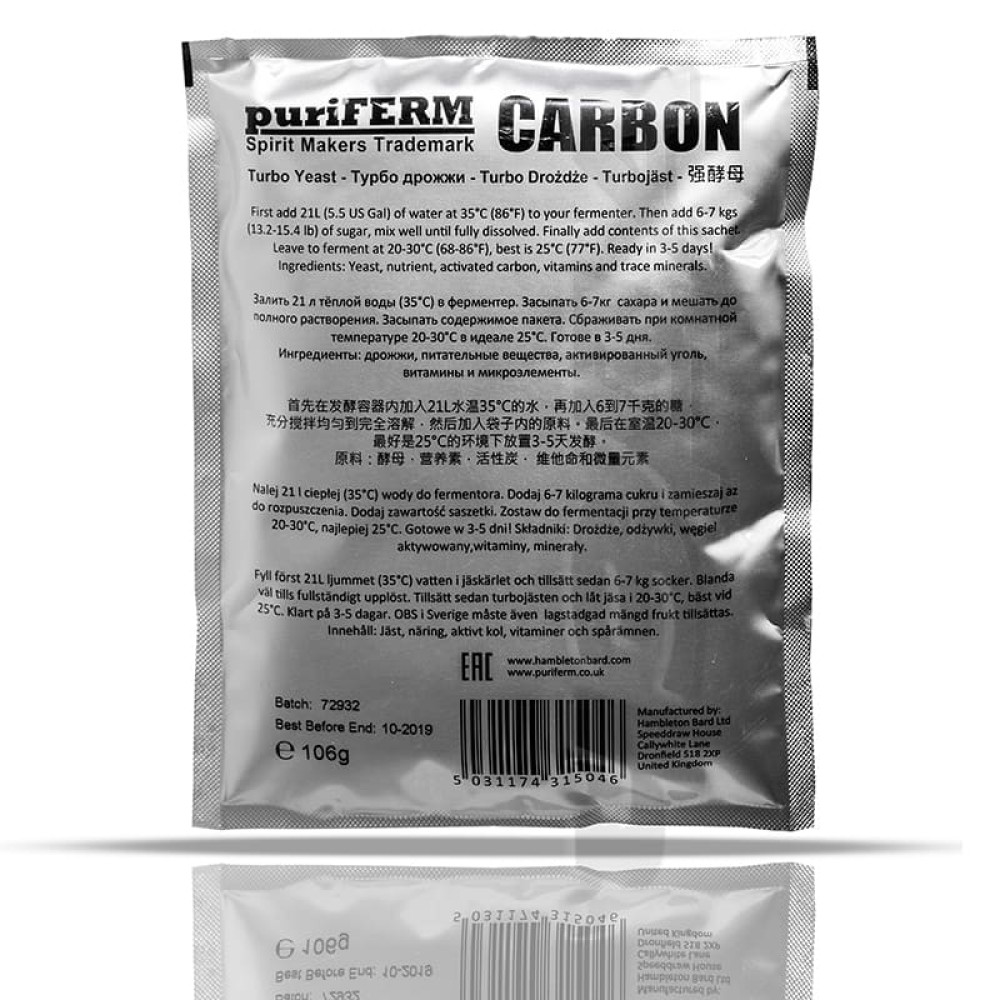 Active dry alcoholic turbo-yeast C3 "Carbon" 120 gr. with a full range of macro and micro nutrient elements, ideal for fermenting the fruit and sugar base of any raw material (glucose sugar syrup). Turbo yeast C3 "Carbon" 120 gr. especially suitable for fast and high alcohol fermentation.