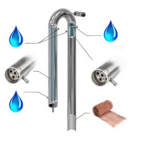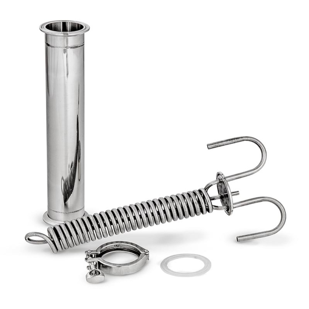 In this case, you can get high-quality vodka, liquors, tinctures at a low price and without much labor. The design of the equipment is completely surpassed by outdated models with dry steamers, since the reflux condenser effectively strengthens alcohol vapors by cleaning fusel oils. Phlegm is returned back to the cube, and alcohol with a strength of up to 96.6% falls into the receiving tank.The installed Dimroth refrigerator accelerates the process of separation of alcohol and phlegm, it can also be used for distilling mash, unlike columns with nozzles, dimrot will not be clogged with mash particles after a few minutes. Rectifier with dimotte with KLAMP (2 inches) is perfect for both professionals and beginners in moonshining, with it you can cheaply get premium branded alcohol.