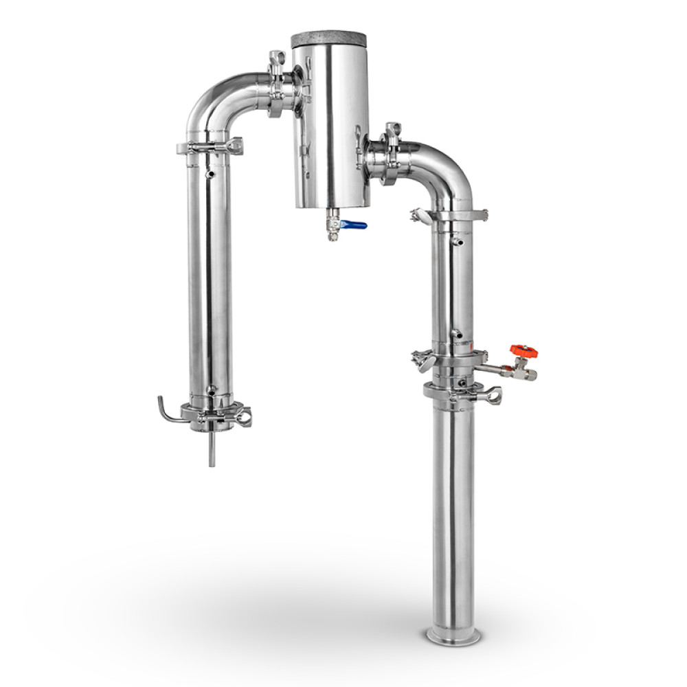 The developers of the beer column thought about the purity of the ready-made moonshine, so we provided technological units for collecting “heads” and draining fusel oils from the gin basket, which do not require equipment to be stopped. Reflegmator and refrigerator have a high contact area of ​​alcohol vapor with a cooling circuit (due to several tubes), which reduces water consumption.