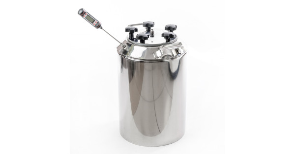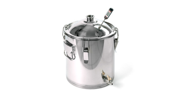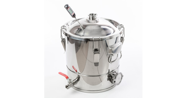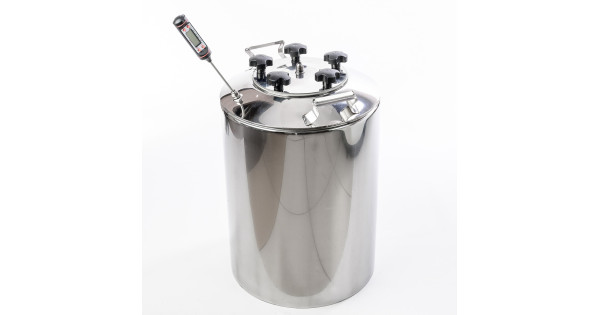 Alembic 20 liters to cover the neck 75 mm thread for the installation of the thermometer for home-brewed apparatus "Gorilych" made of food-polished stainless steel with thickness of 1 mm at the factory, has a robust design, has a flat botto..