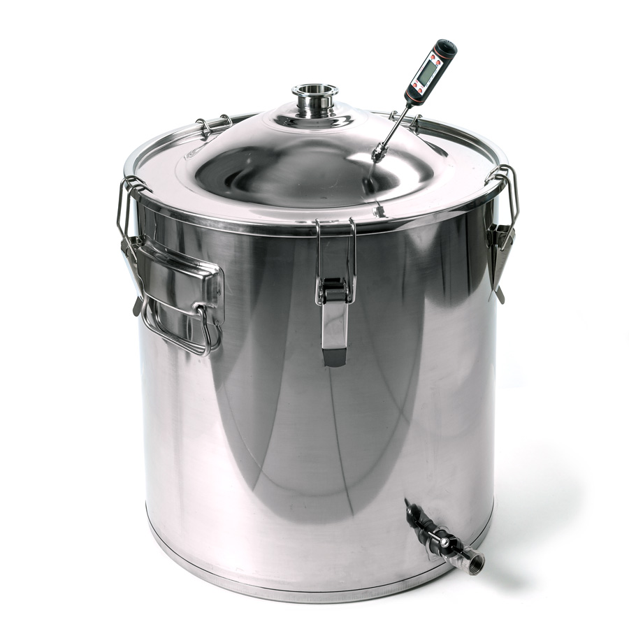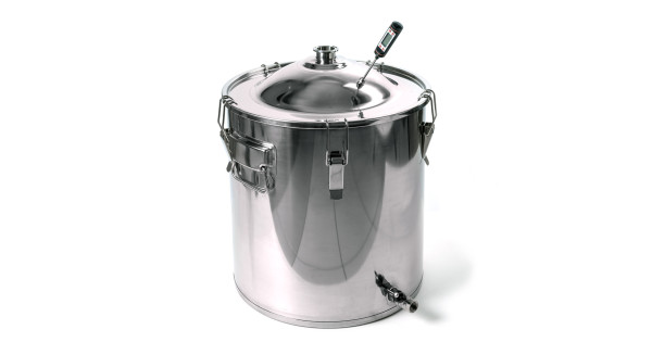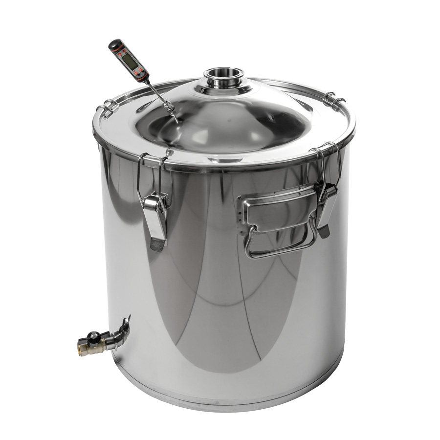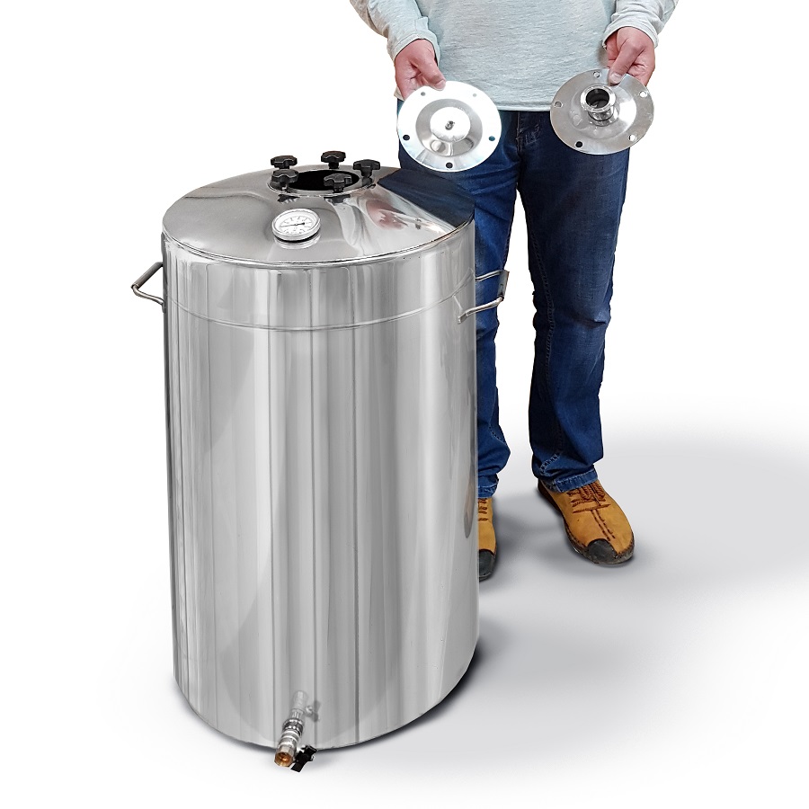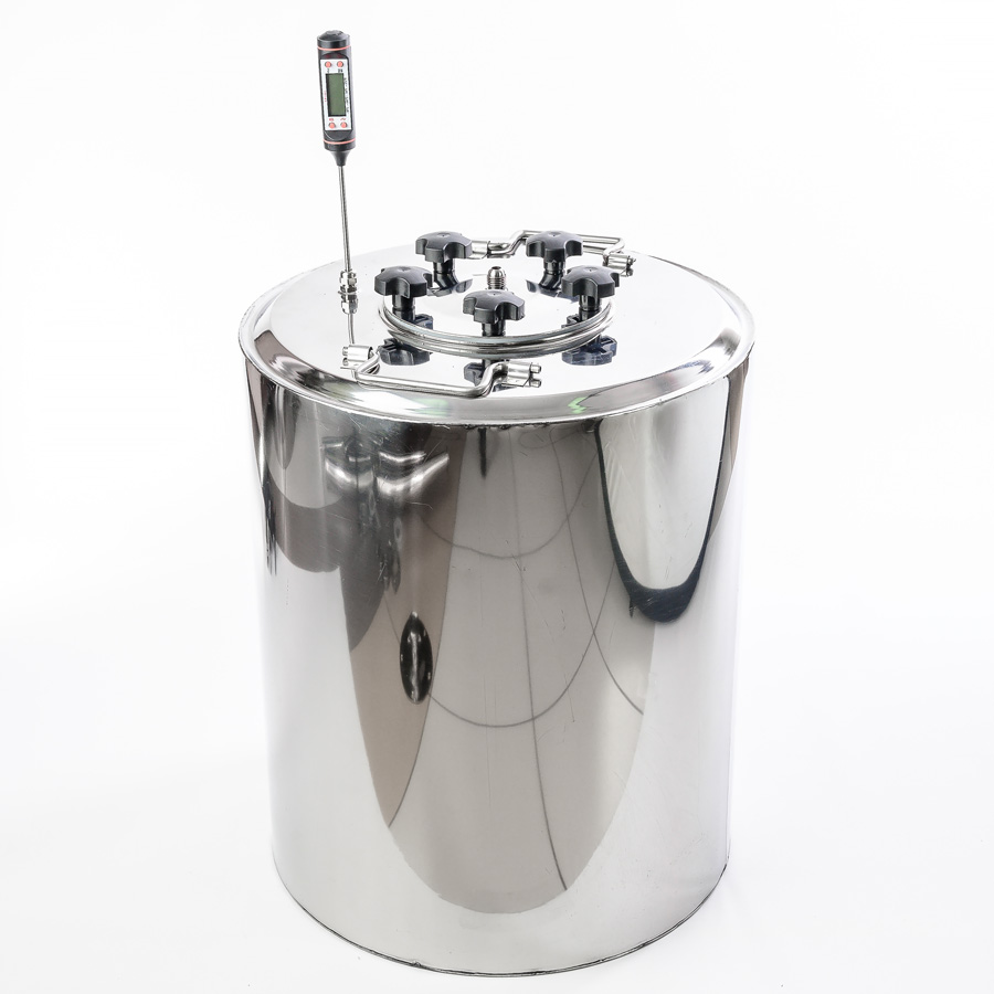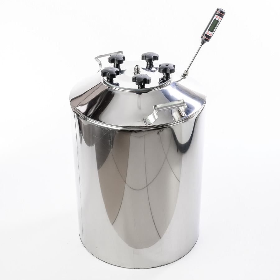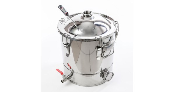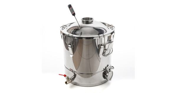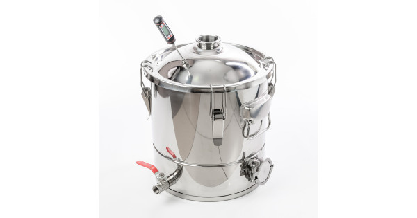 Alembic 30 liters to cover the neck 75 mm thread for the installation of the thermometer for home-brewed apparatus "Gorilych" made of food-polished stainless steel with thickness of 1 mm at the factory, has a robust design, has a flat botto..