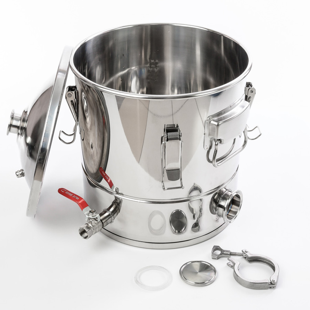 Distillation cube 20/300/t under the heating element has an easy-to-use cover of 300 mm and a flat induction bottom of the "sandwich" type, therefore it is suitable for use on stoves of all types and sizes, incl. induction. The presence of a 2-inch flange allows you to install heating elements with the appropriate size and different capacities to reduce the heating time of the primary wort and reduce energy costs. And the inner groove made around the circumference of the distillation cube will allow you to easily and simply install a false bottom with a diameter of 300 mm to prevent sticking of thick fragrant bregs. Thanks to this, home brewing will turn from a procedure for making homemade alcoholic beverages into a real art, the end result of which will be a high-quality, clean and incredibly tasty drink with which you can pamper yourself and all your friends.