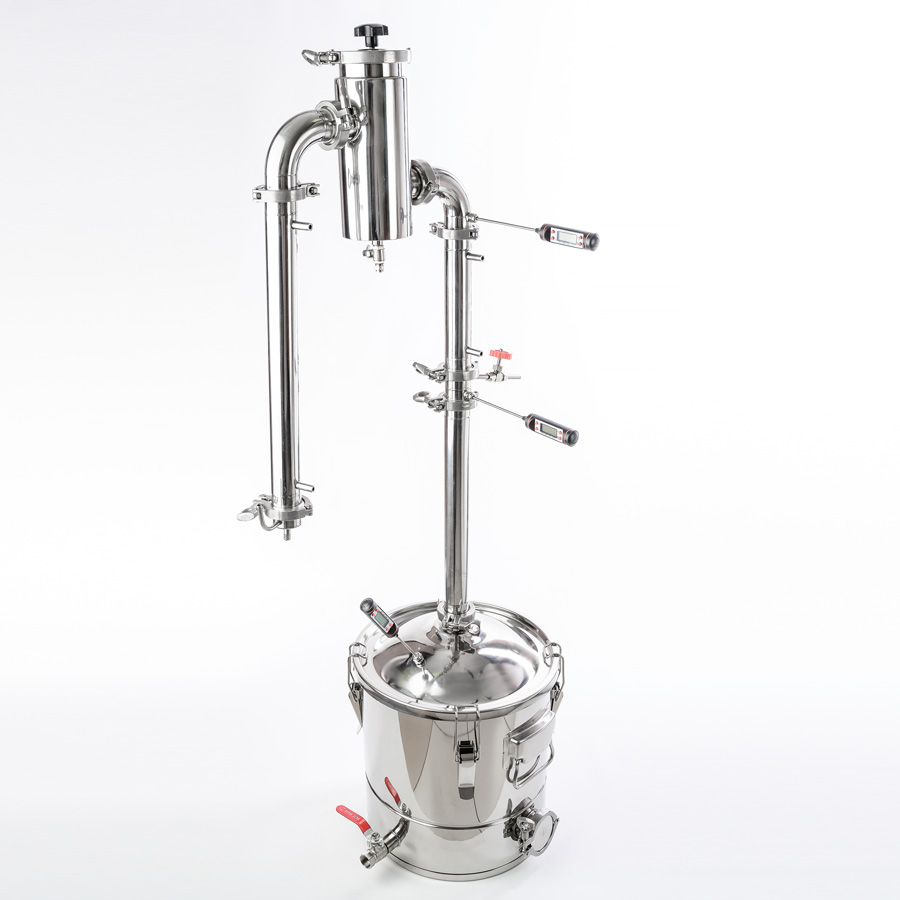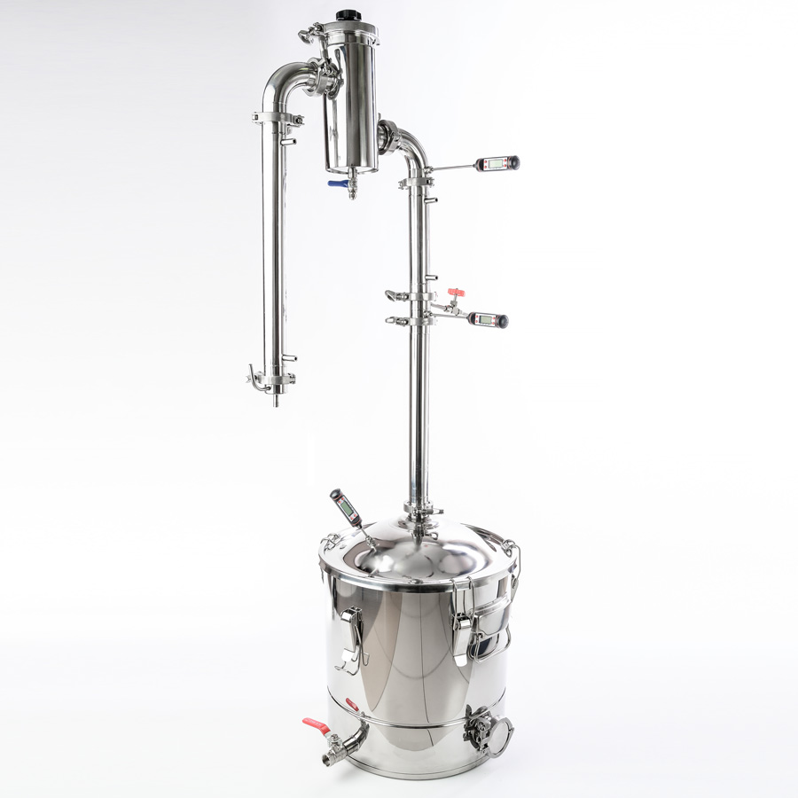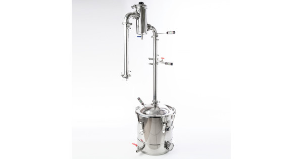 Mash column Gorilych 30/350/t CLAMP (3 inches) allows the distiller to work in the potstill mode for distilling mash into raw alcohol and obtain aromatic distillates, and in the rectification mode to obtain high-quality alcohol 96.6% with a capacity ..
