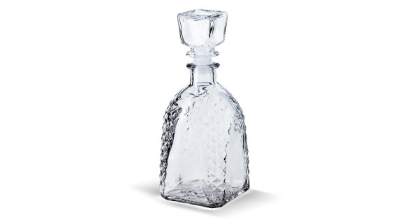Jug "Prism" 1 liter with a plastic cover. Made of glass. A screw-on plastic cover with a convenient handle is included. The shape of the jug is made in a strict minimalist style with 8 faces...